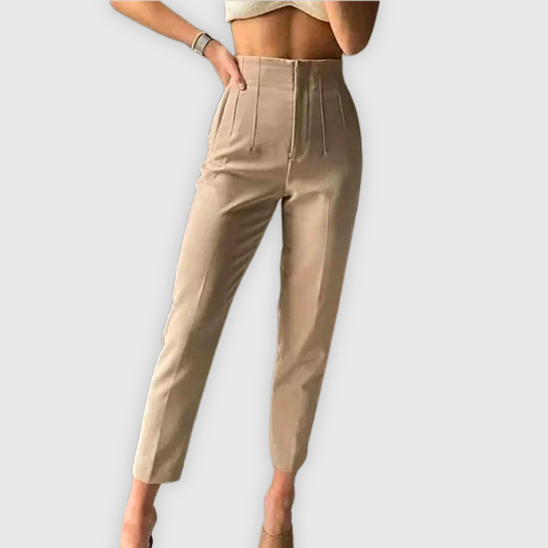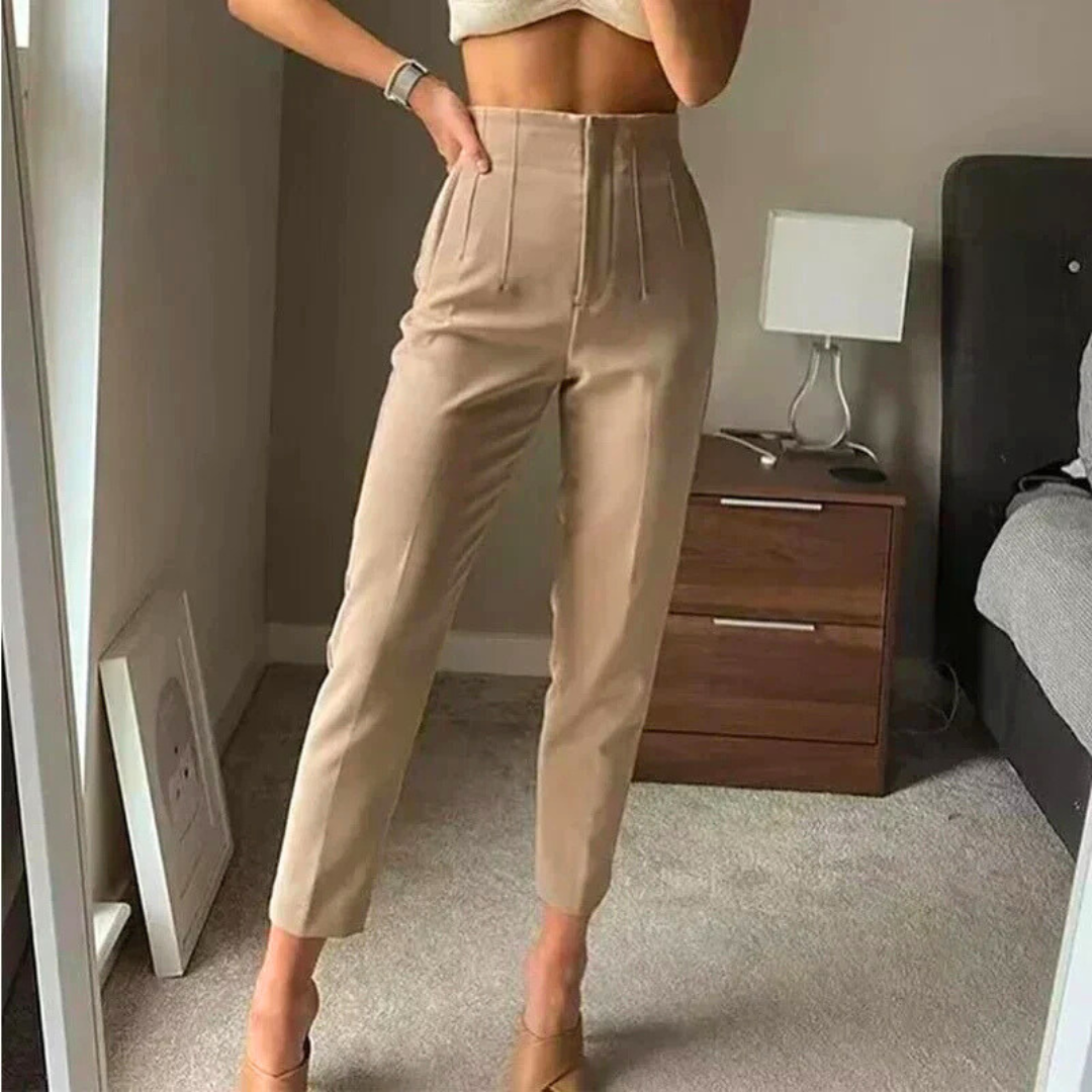 Marianna -housut hurmaavat korkeavyötäröisellä mallillaan , joka muotoilee kauniisti ja myötäilee liikkeitäsi. Premium-laatuinen, pehmeä materiaali tuntuu miellyttävältä päällä – elegantti, mukava ja monipuolisesti yhdisteltävä toimistolle, arkeen tai vapaa-aikaan.