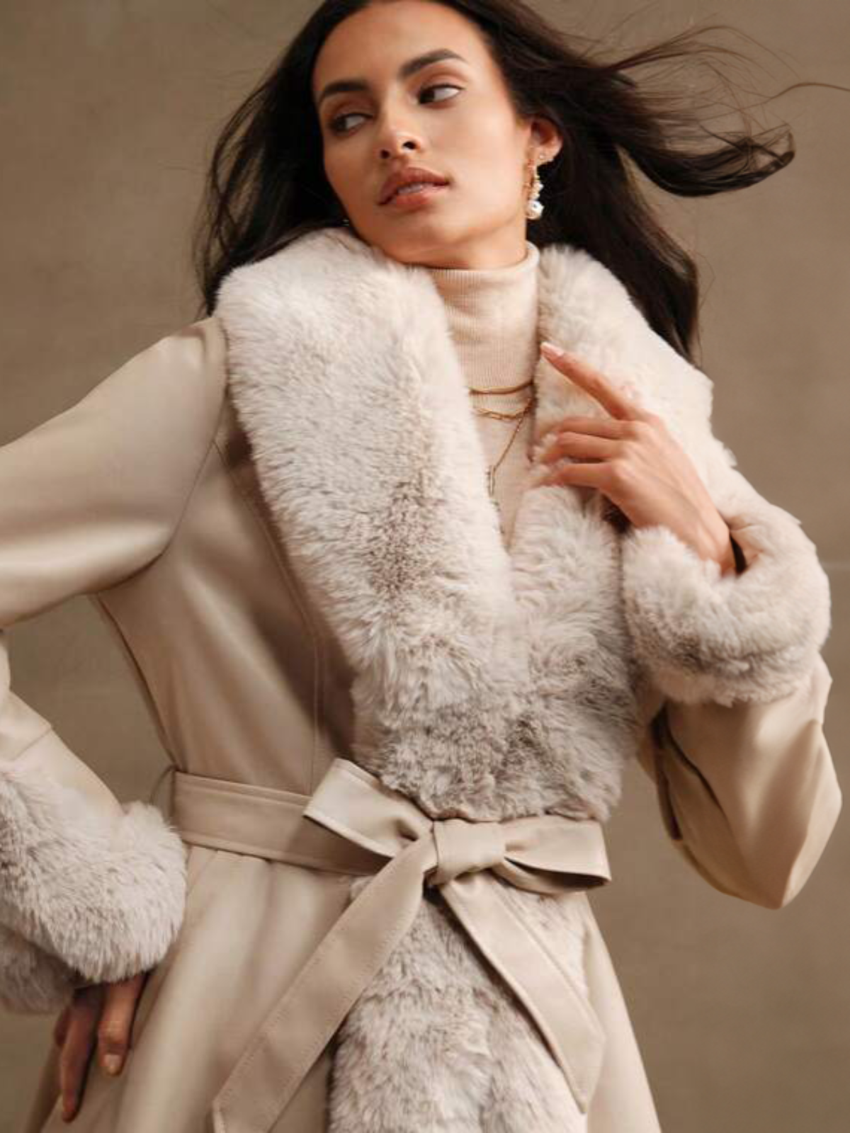 Erhöhe deinen Stil mit der bezaubernden Ausstrahlung der Corinne Kunstpelzjacke