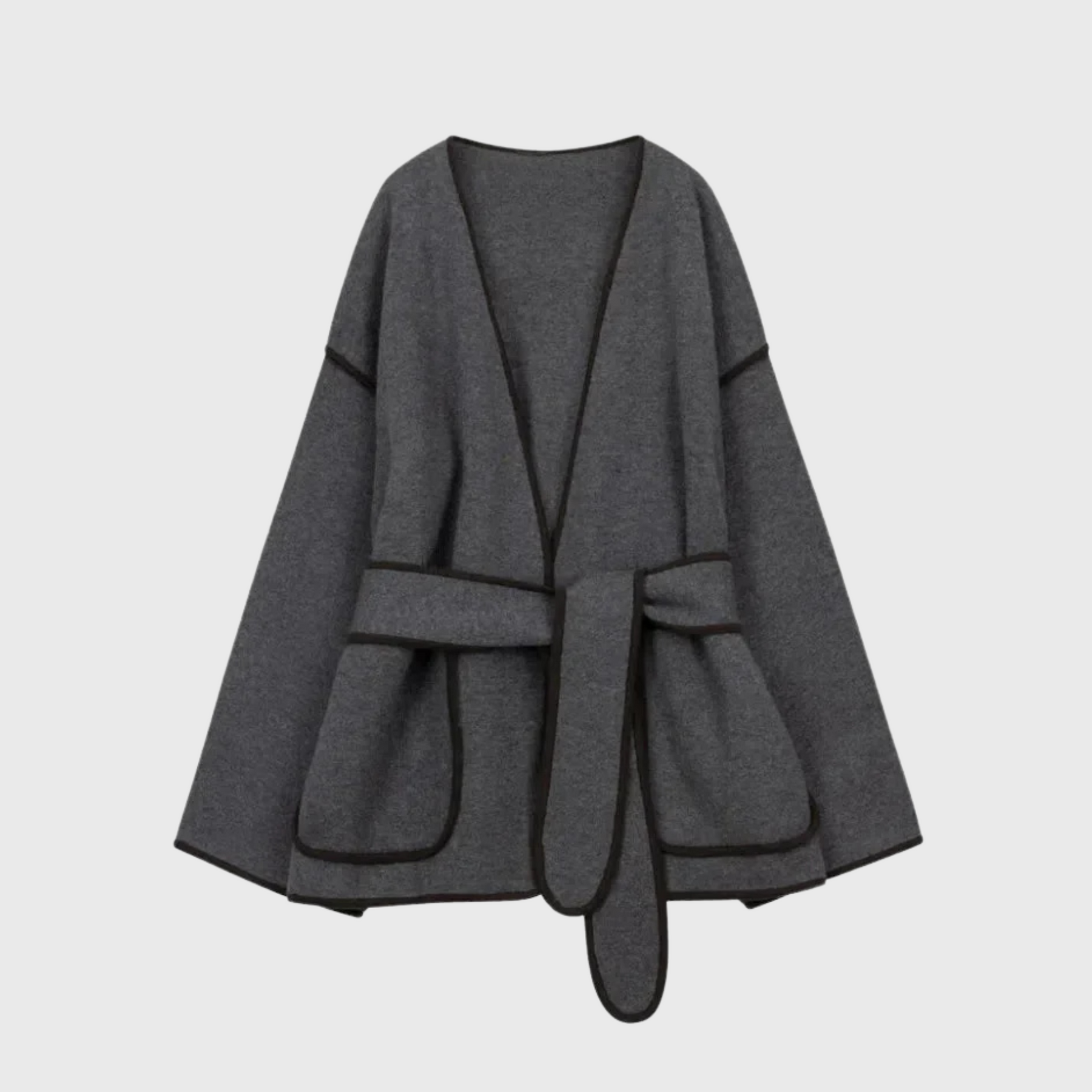 Ysolde | Tyylikäs kaapu-säkkikangas takkiídotulla vyöllä