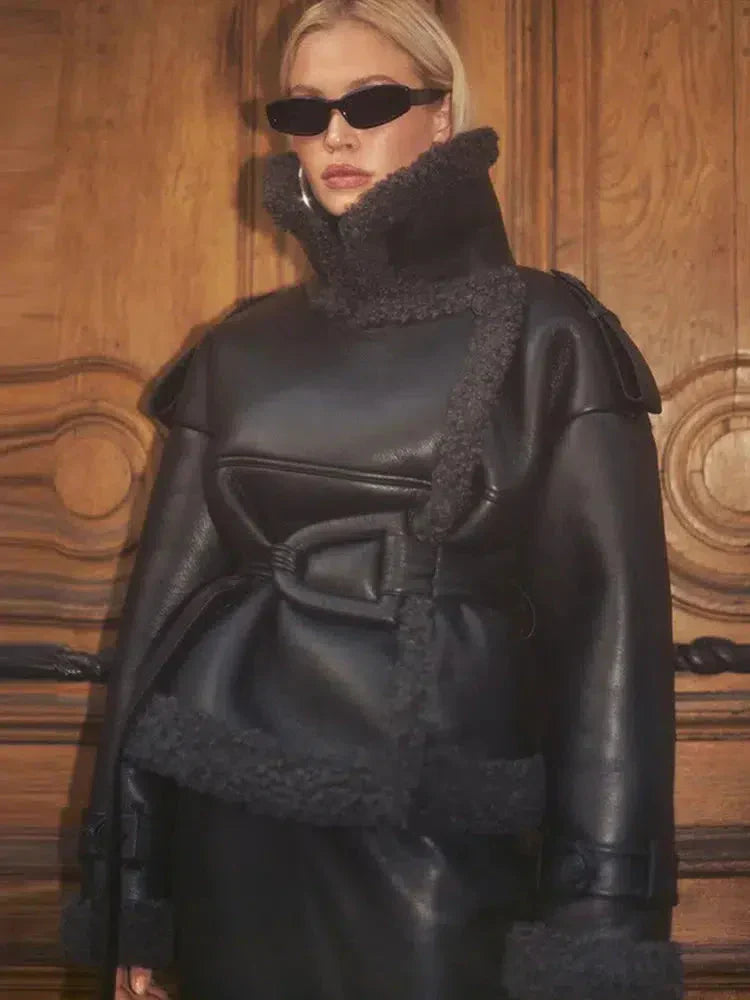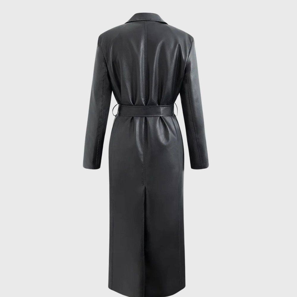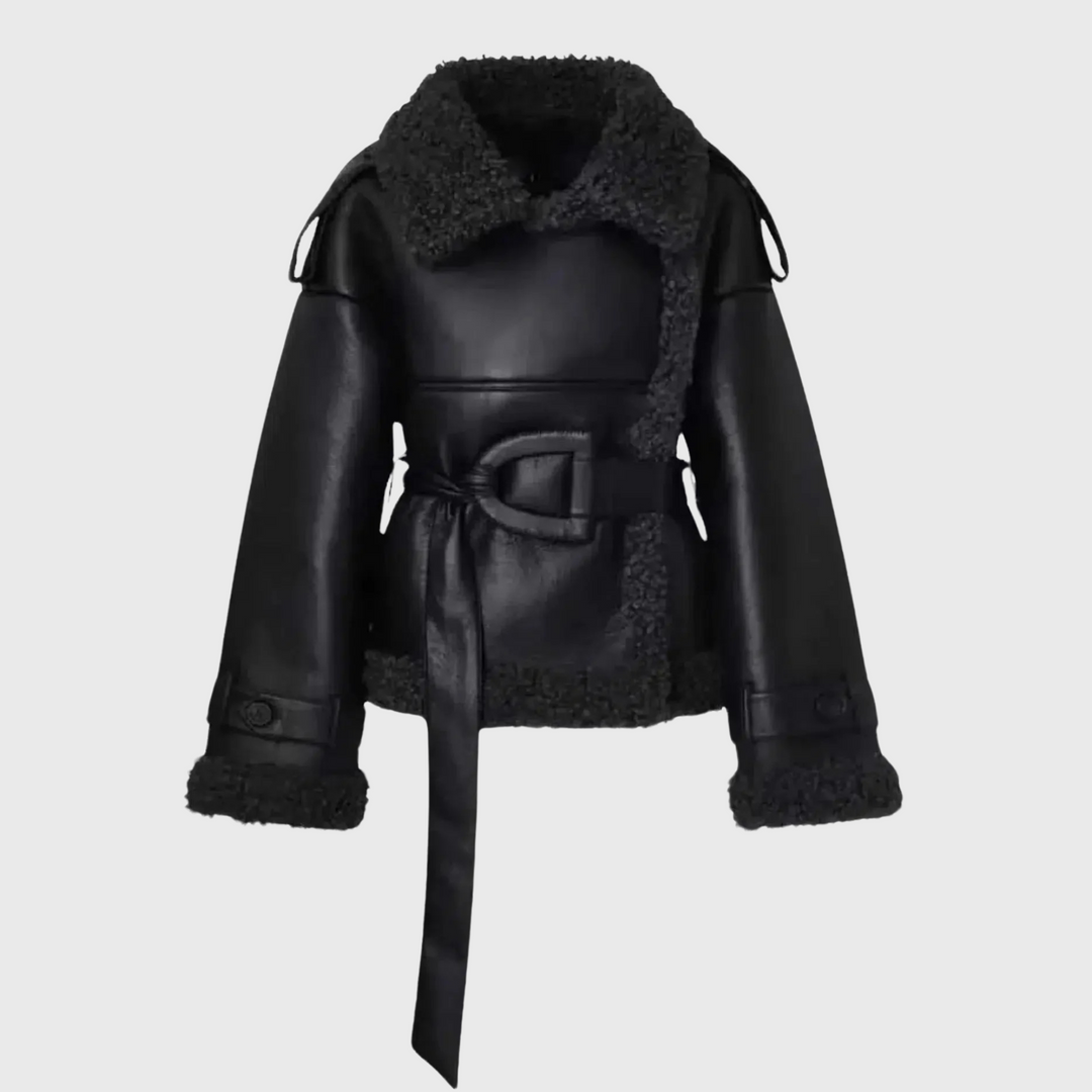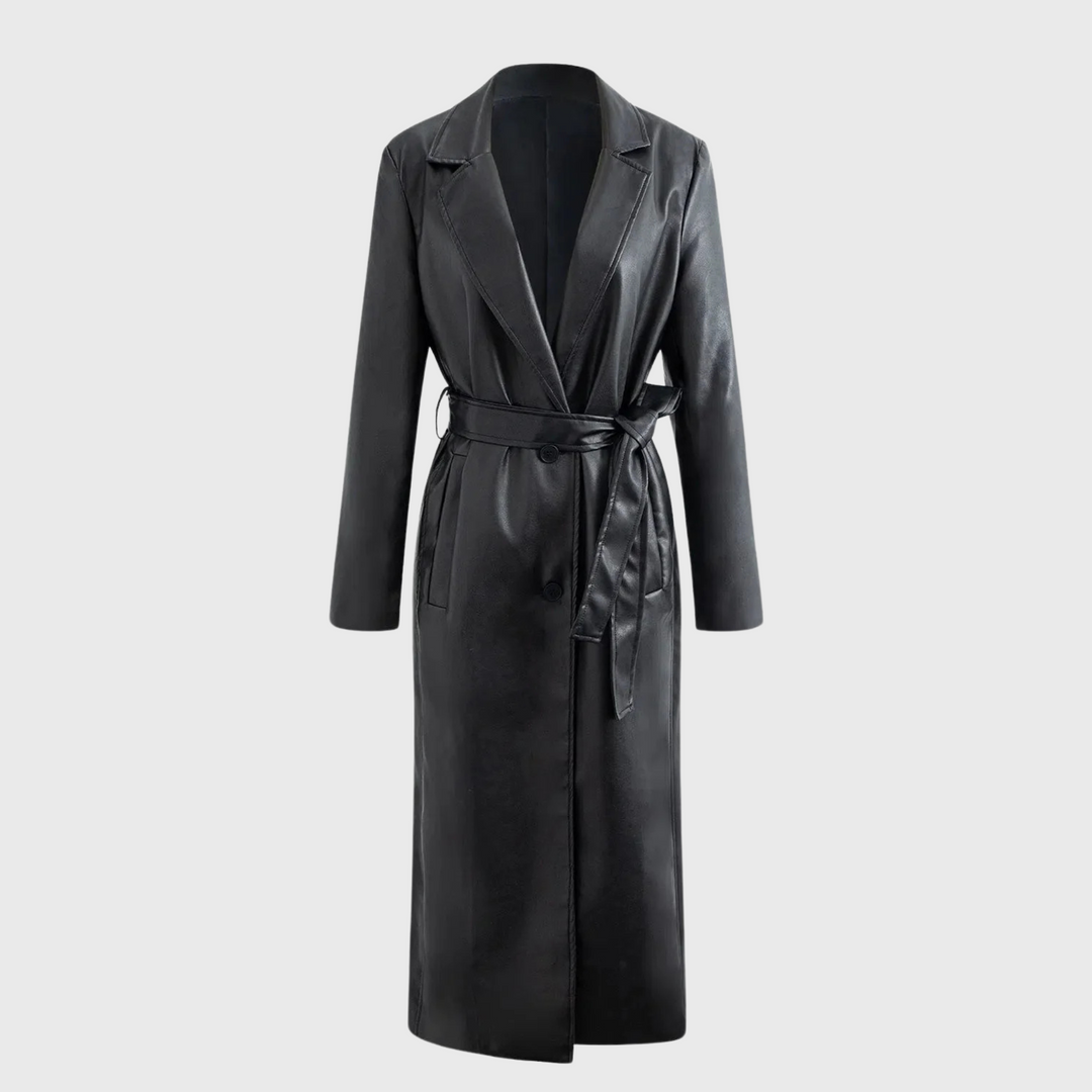 Corinne | vuorattu tekonahkainen takki vyöllä