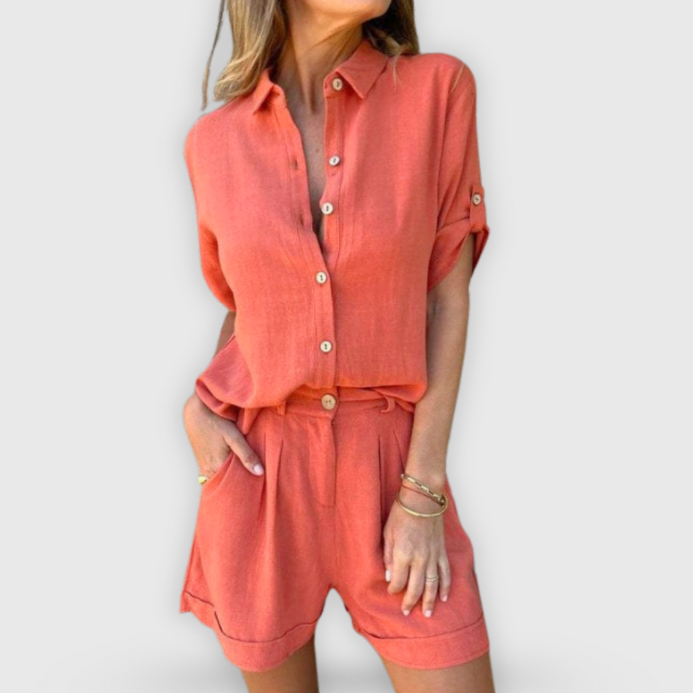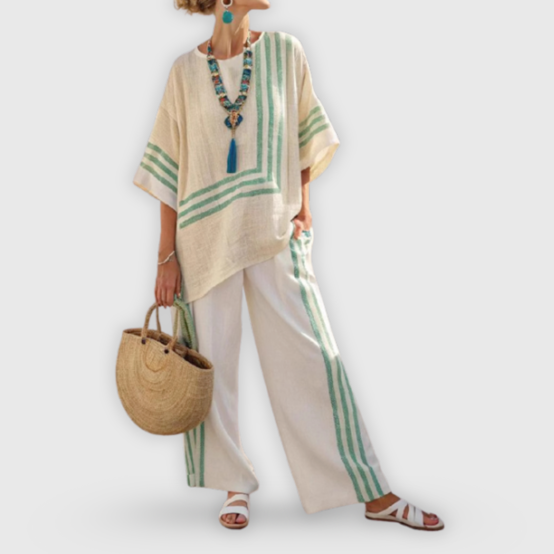 Isabella | Tyylikäs pellavahousu- ja pusero-setti