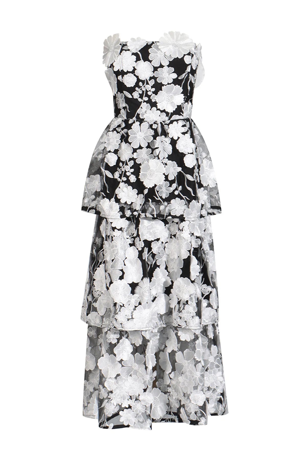 Marzia | Olkaimeton premiummekko kukka-applikoinneilla