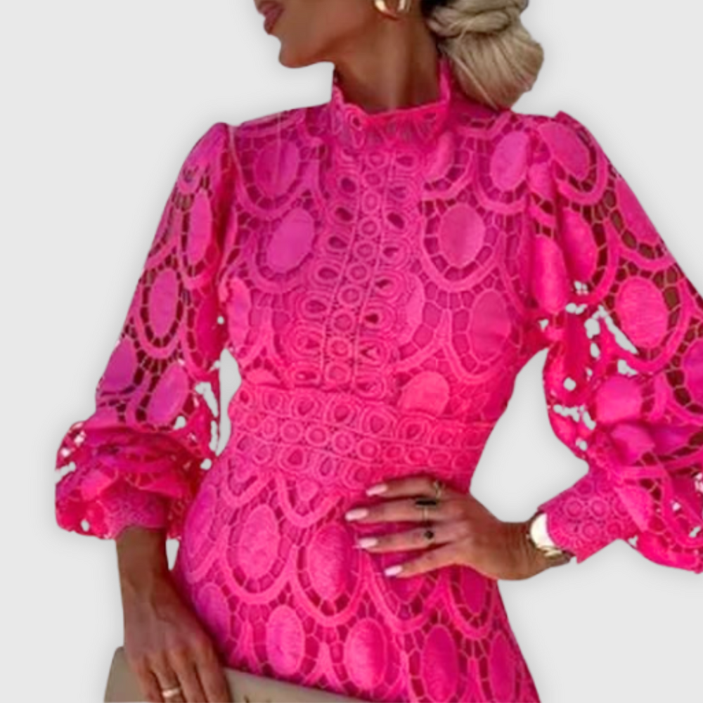 Elena | Tyylikäs midi-mekko pitsikoristeilla